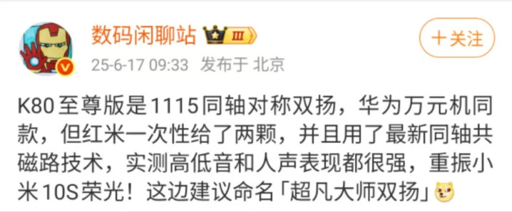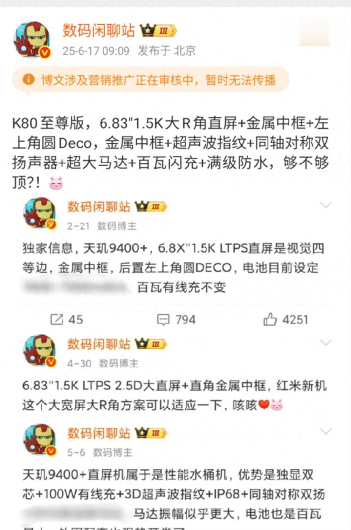 编辑点评:红米K80至尊版或将凭借天玑9400+的出色能耗表现,彻底打破中端机与旗舰机的体验边界。同时其搭载的超声波指纹、高品质对称双扬与振动马达,更将以往专属高端机型的技术普惠化,若最终定价如爆料贴近2600元档位,这款“升档之作”势必将重塑中端市场格局。
